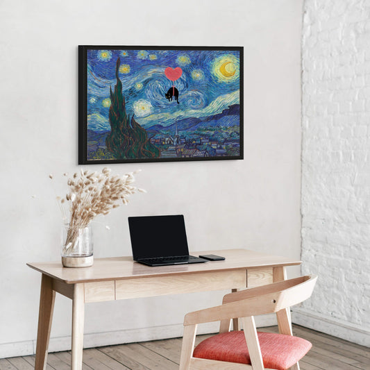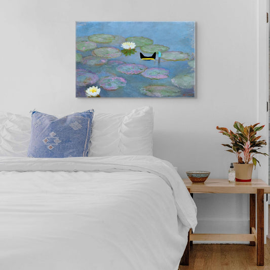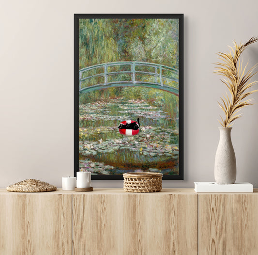 Monet’s Water Lilies with Snorkeling Black Cat Canvas