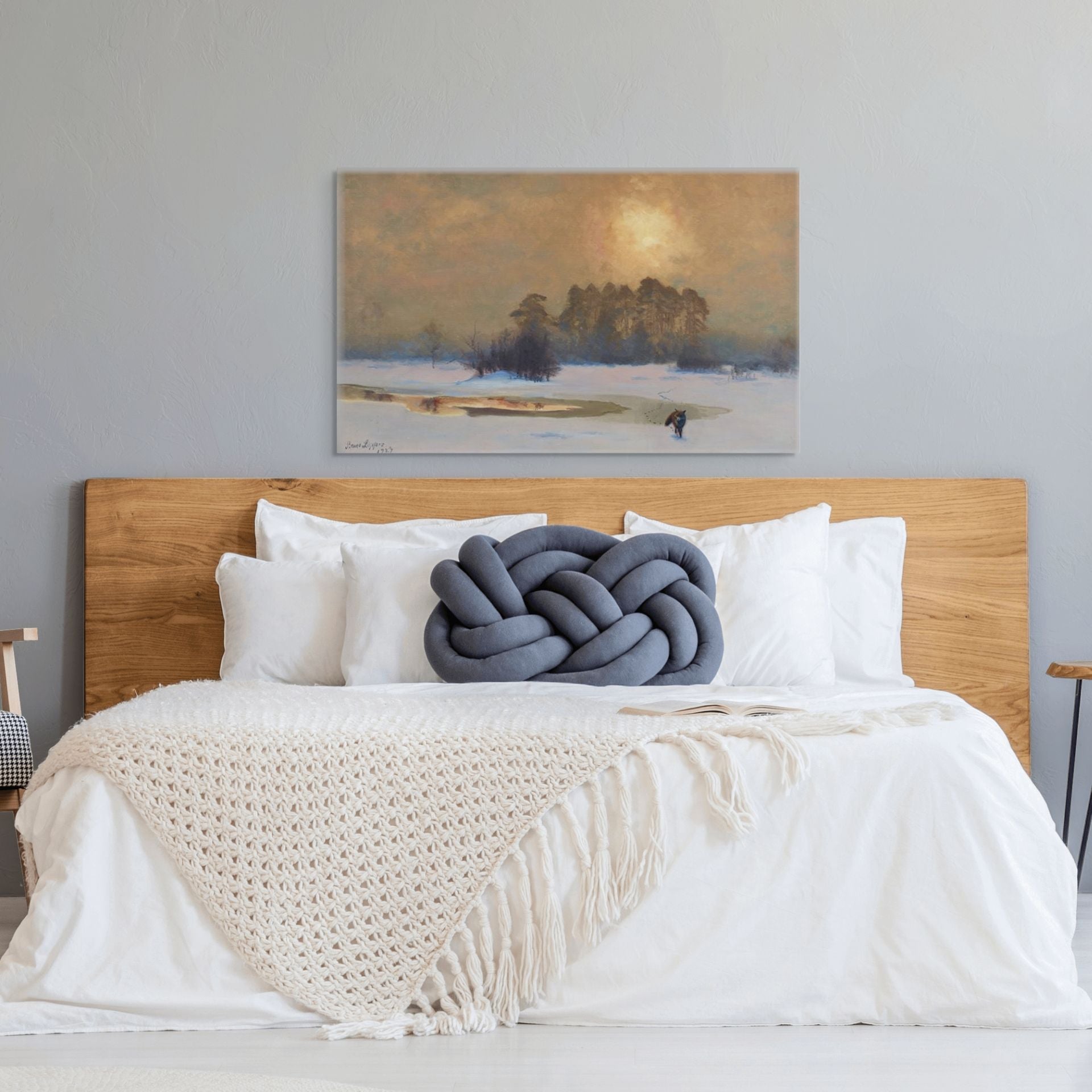 Printed on premium canvas, this artwork blends warm golden tones and cool winter whites, bringing a peaceful yet captivating energy to any home, cabin, or cottage. Ideal for lovers of Scandinavian wildlife art and timeless nature-inspired decor, it’s a piece that invites calm reflection and quiet admiration.